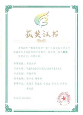 此外,由员工毕文哲、杨新宇、刘硕、崔增辉、魏光硕、张超、刘元鹏等完成的项目“基于MPF推进模式的节能型水下作业仿生机器”,公维壮、陈智鹏、刘思宇、管锡志、万嘉昊、李永鑫、杨永峰等同学完成的项目“基于MCU控制的智能可升降减速带发电机器”,由唐吉虎、王海龙、方宝乾、邱钟毅、高崇、张雨生、戴煜雅等同学完成的项目“关于啤酒瓶逆回流现状调查报告及优化方案”,由贾腾龙、王清正、邵凯伟、葛遥、胡国强等同学完成的项目“慧居一一基于反烧原理的全自动智能炊暖两用采暖炉”等4项作品获得全国三等奖。