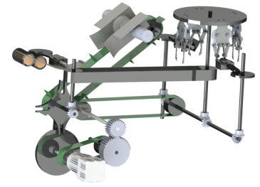 碳棒回收装置和化学物质分离装置都是由曲柄滑块机构来实现对干电池的碳棒和化学物质的分离,传动装置由同步带,链轮链条,皮带皮带轮组成传动机构,由槽轮,不完全齿轮组成间歇性机构,最终实现对废旧干电池中金属锌、塑料及碳棒的分离,对于保护环境、实现资源的回收利用具有重要意义。